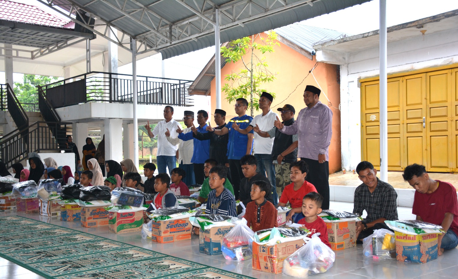 Walikota Langsa Jeffry Sentana S Putra, SE, menyalurkan paket bantuan berupa, sembako, biskuit (makanan ringan), pakaian baru, kain sarung, jilbab, peralatan mandi, susu dan uang santunan bagi anak yatim/piatu di Kota Langsa, Sabtu (27/12/2025).