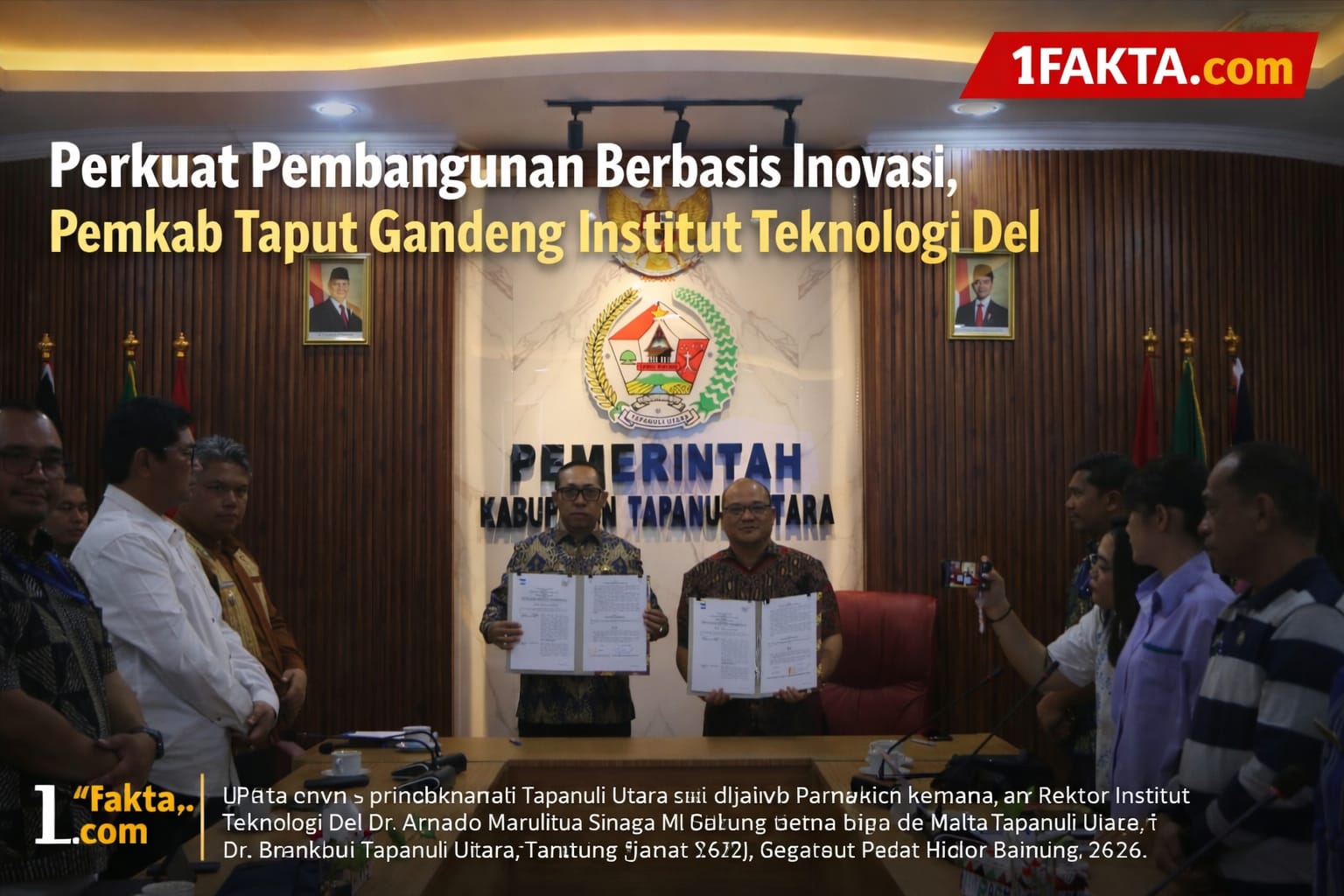 Pemerintah Kabupaten Tapanuli Utara resmi menjalin kerja sama strategis dengan Institut Teknologi Del dalam upaya mendorong pembangunan daerah berbasis riset, inovasi, dan penguatan sumber daya manusia. Kesepakatan bersama tersebut ditandatangani di Aula Mini Kantor Bupati Tapanuli Utara, Tarutung, Jumat (13/3/2026).