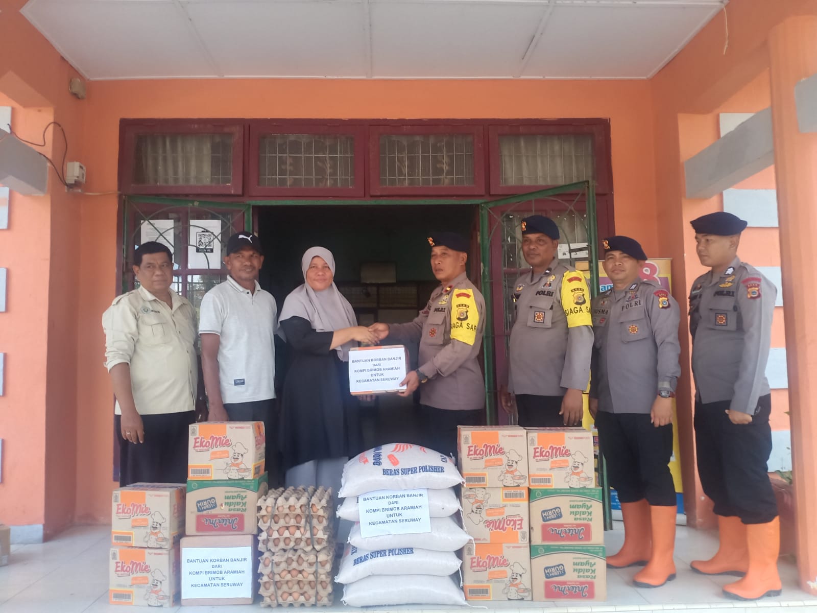 Komandan Kompi 2 Batalyon B Pelopor AKP Muhammad Rizaldi memerintahkan Paops Kompi 2 Batalyon B pelopor Ipda. M. Thalib guna menyerahkan secara langsung Bantuan sosial tersebut.