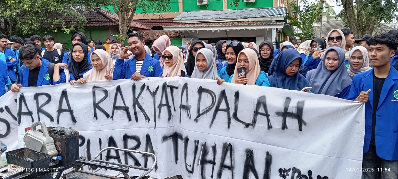 Hari ini Senin, 24 februari 2025, bertempat di halaman kantor DPRK Kota Langsa, mahasiswa mengajukan beberapa tuntutan diantaranya :