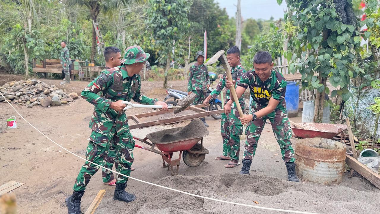 Anggota Satgas TMMD Ke-123 Kodim 0111/Bireuen Rancang dan Bangun Tugu TMMD Sebagai Simbol Kebersamaan dan Dedikasi.