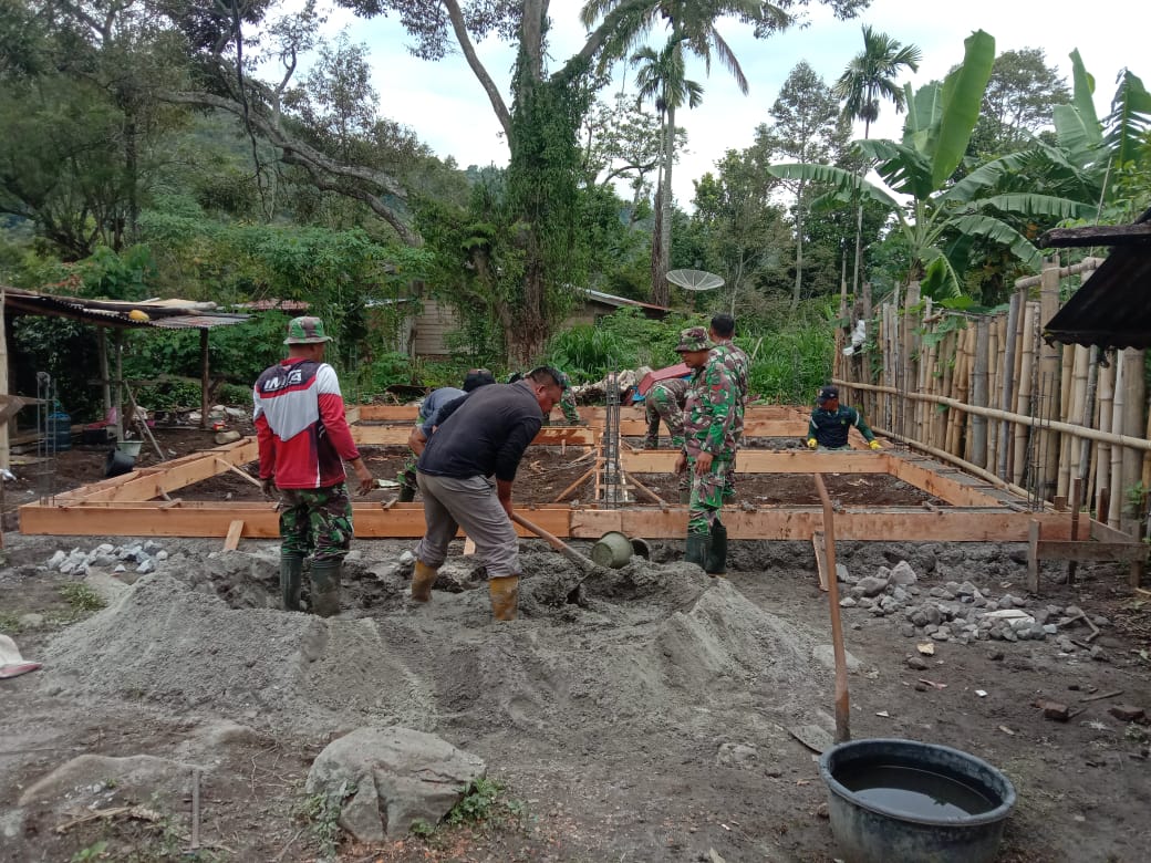 Satgas TNI Manunggal Membangun Desa (TMMD) ke-126 Kodim 0106/Aceh Tengah terus melanjutkan pengerjaan sasaran fisik dengan mendirikan pondasi rumah warga milik ibu Kasnawati yang menjadi bagian dari program rehabilitasi rumah tidak layak huni (RTLH) di desa roteh kec, Silih Nara Kab. Aceh Tengah. Sabtu (18/10/25)
