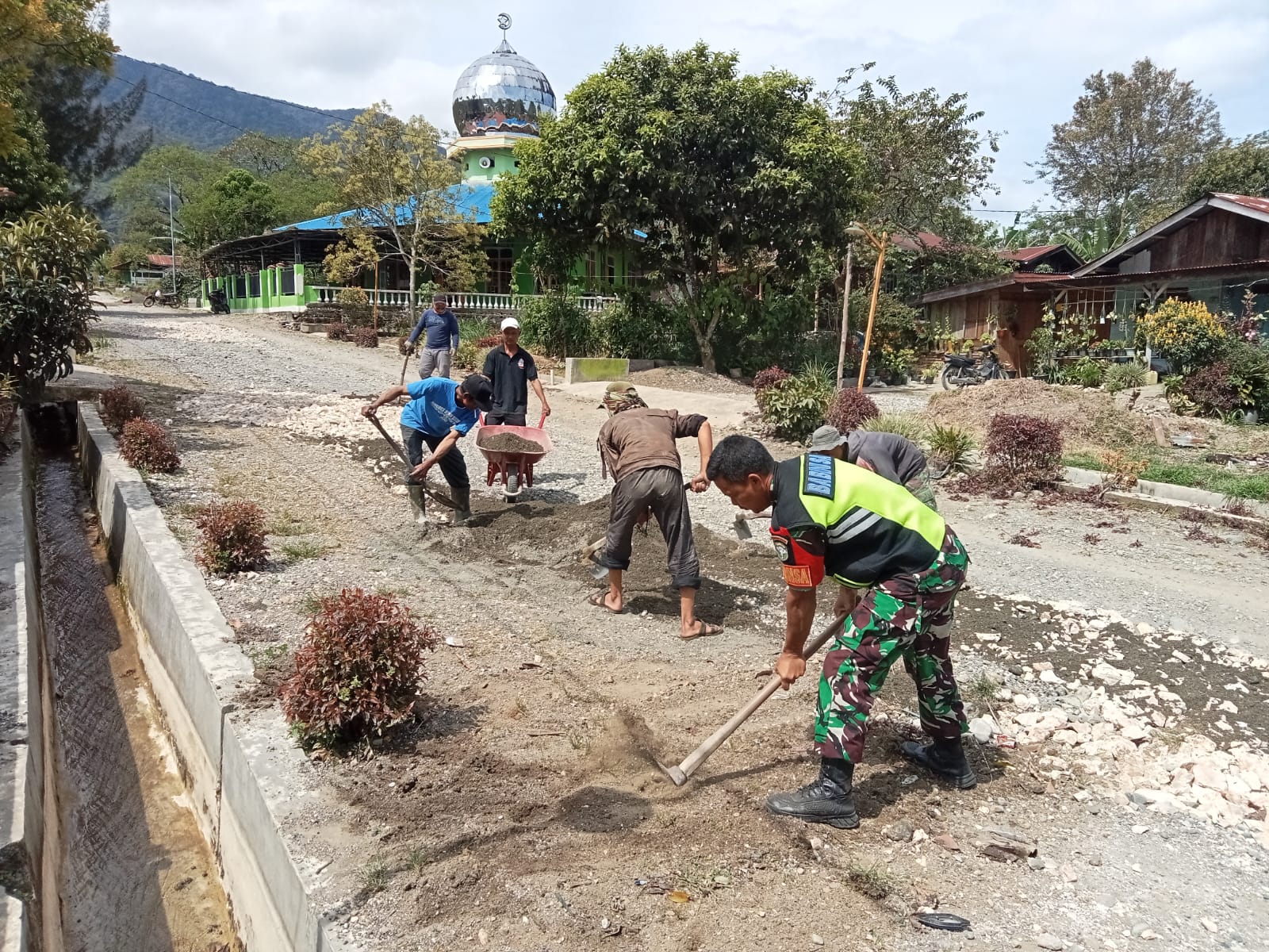 Serda Juliadi juga mengatakan,kegiatan gotong royong ini sudah menjadi kegiatan anggota TNI terutama Babinsa Desa dalam membantu masyarakat untuk bergotong royong bersama masyarakat, baik gotong royong dalam pembuatan Masjid, Perbaikan Jalan, dll untuk kepentingan bersama.Ujarnya.