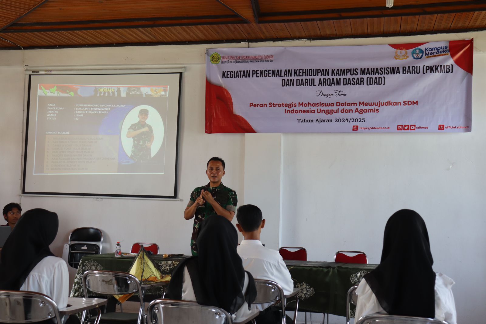 Dalam rangka pengenalan mahasiswa baru di Kampus Sekolah Tinggi Hukum Muhammadiyah, Dandim 0106/Aceh Tengah, Letkol Inf Kurniawan Agung Sancoyo SE, M.,Han