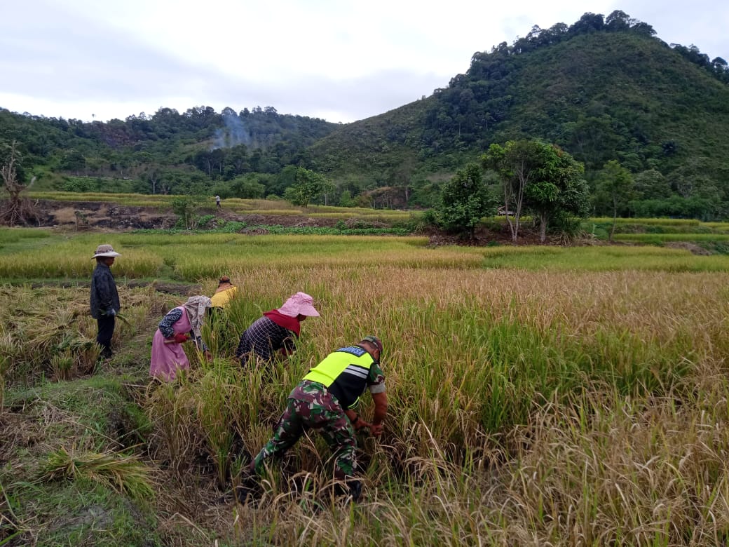 Serka Abdul Gani mengungkapkan, Babinsa dalam mendukung Ketahanan Pangan (Hanpangan) ikut serta terjun langsung ke sawah untuk membantu para petani desa binaannya saat memanen padi agar terwujud kemanunggalan TNI dengan rakyat.