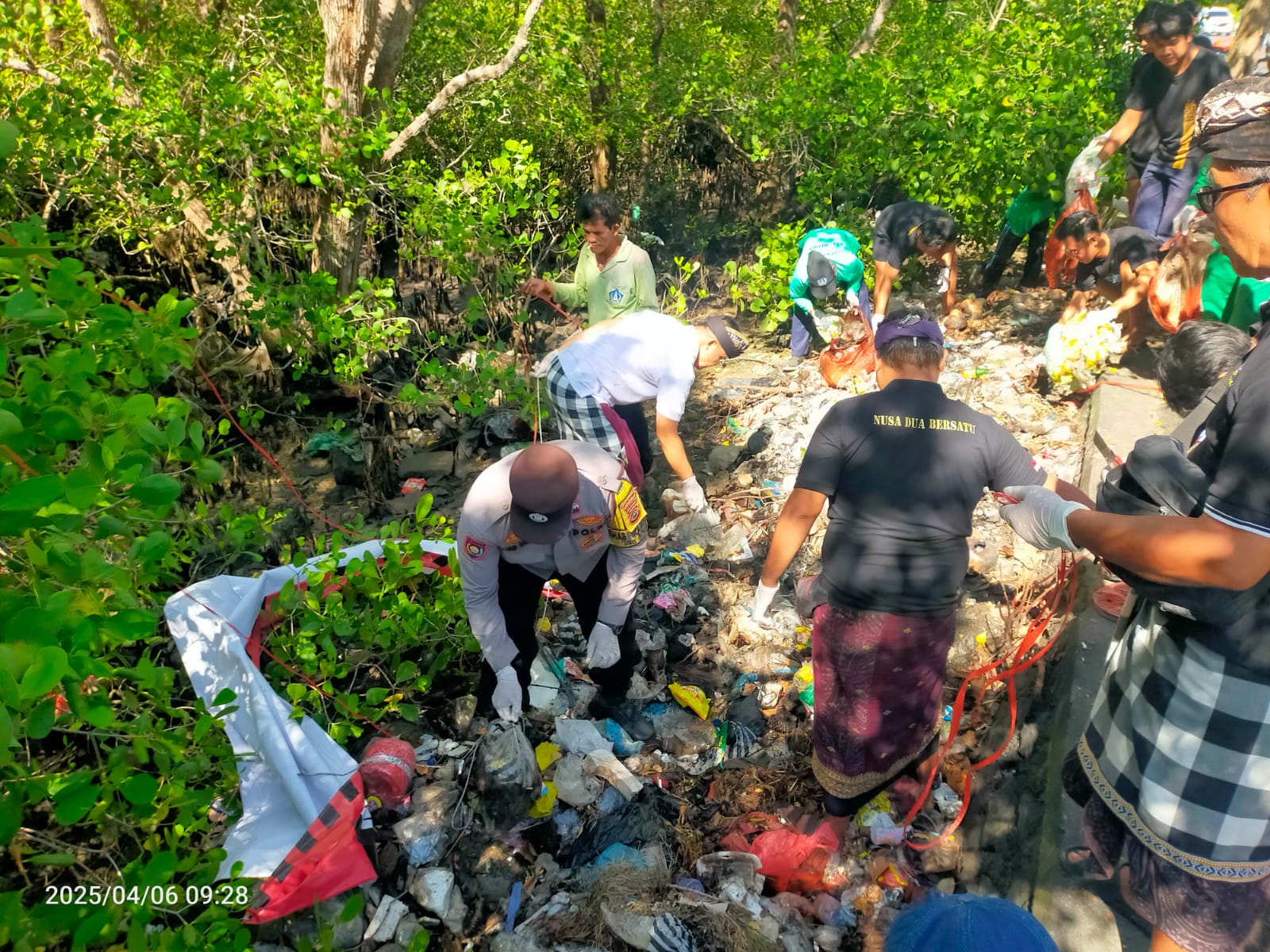 Aksi bersih-bersih ini melibatkan personel Bhabinkamtibmas, Bankamda, Linmas, STT Yowana, Kepala Lingkungan Celuk, Kelian Adat Celuk, Prajuru Desa Adat Bualu, serta Dinas Lingkungan Hidup dan Kebersihan (DLHK) Kelurahan Benoa.