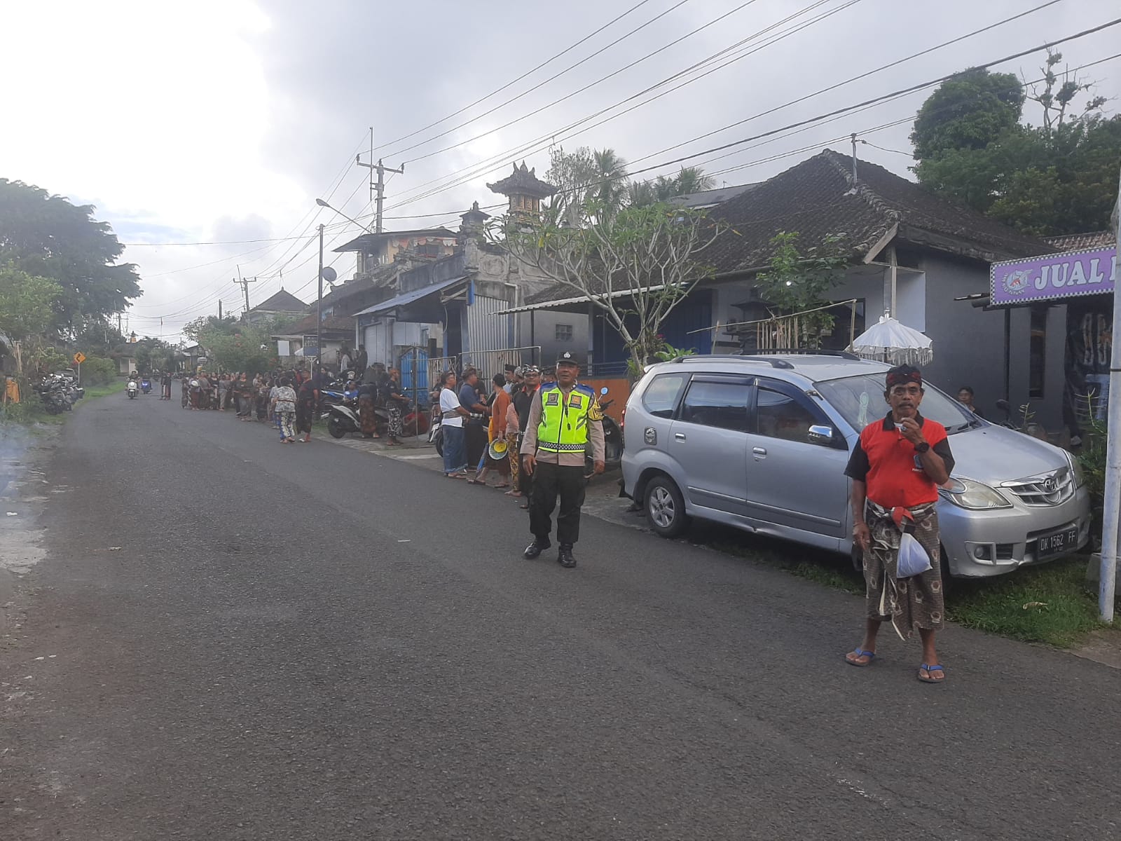 Seijin Kapolres Tabanan AKBP Chandra C. Kesuma.S.I.K.,M.H, Kapolsek Pupuan AKP I Wayan Sudiarba Yang Di Wakili Oleh Bhabinkamtibmas Desa Pupuan Aiptu I Nyoman Darmayasa Mengatakan Warga Banjar Dinas Kayupadi Desa Pupuan kec. Pupuan yang Meninggal Atas Nama Ni Nengah Darmi Yang di Karenkan Sakit, selain melaksanakan pengamanan, Bhabinkamtibmas selalu koordinasi dengan keluarga duka serta Adat banjar mengingat dari rumah duka menuju kuburan menggunakan jalur utama sehingga dilakukan pengamanan jalur,agar tidak mengganggu arus lalin .