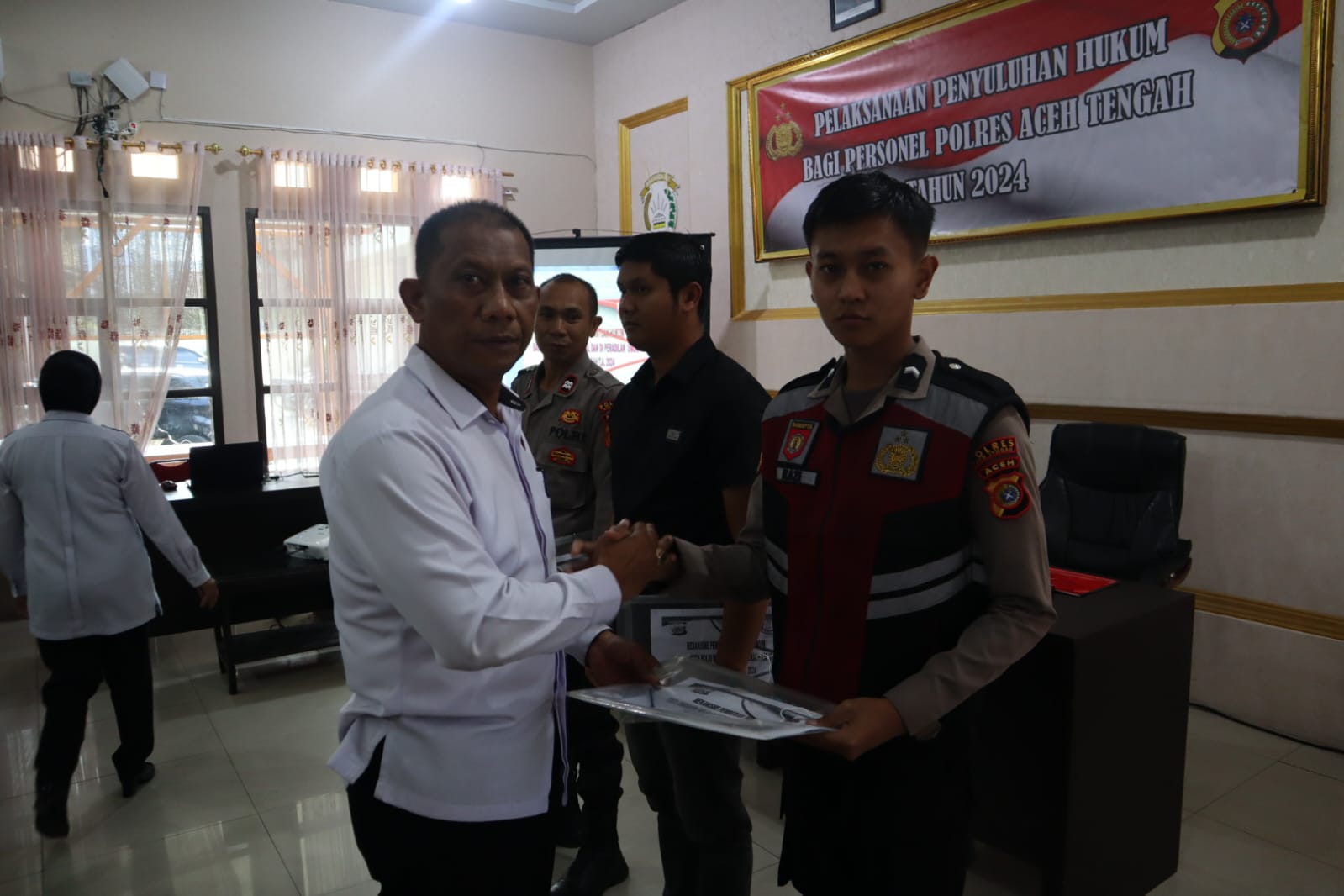 Kapolres Aceh Tengah AKBP Dody Indra Eka Putra,S.I.K,M.H, membuka penyuluhan hukum bagi personel Polres Aceh Tengah, bertempat Aula Polres setempat, Pada Kamis 25 Juli 2024 pagi pukul 09.30 WIB.