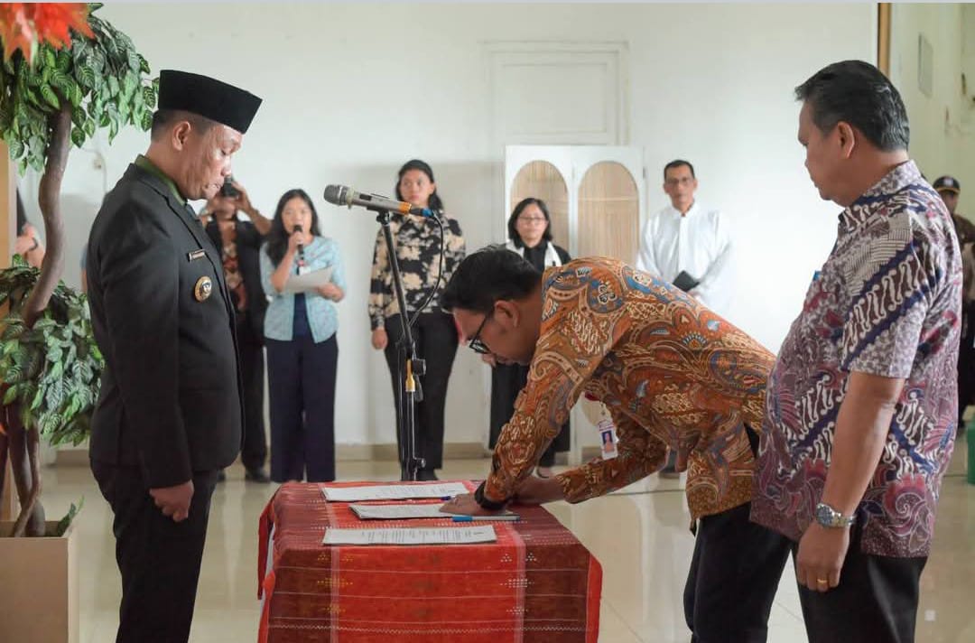 Bupati Humbang Hasundutan, Dr. Oloan P. Nababan, SH, MH melantik Pejabat Administrator, Pengawas dan Fungsional pada Lingkungan Pemkab Humbang Hasundutan, di Serambi Kehormatan Kantor Bupati, Kamis 5 Juni 2025.