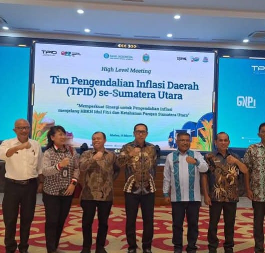 Bupati Tapanuli Utara Dr. Jonius Taripar Parsaoran Hutabarat, S.Si, M.Si (JTP) didampingi Inspektur Daerah, Kadis Pertanian, Kadis Ketahanan Pangan, Kadis Koperasi, UKM, Perindustrian dan Perdagangan serta Kepala Bagian Perekonomian dan SDA Setdakab menghadiri High Level Meeting (HLM) Tim Pengendalian Inflasi Daerah (TPID) Provinsi Sumatera Utara dalam rangka ketersediaan pasokan dan stabilitas harga komoditas pangan pada Bulan Suci Ramadhan dan Idul Fitri 1446H yang dipimpin Gubernur Sumatera Utara Bapak Bobby Nasution bertempat di Aula Raja Inal Siregar Kantor Gubernur Sumatera Utara, Jumat (14/03/2025).
