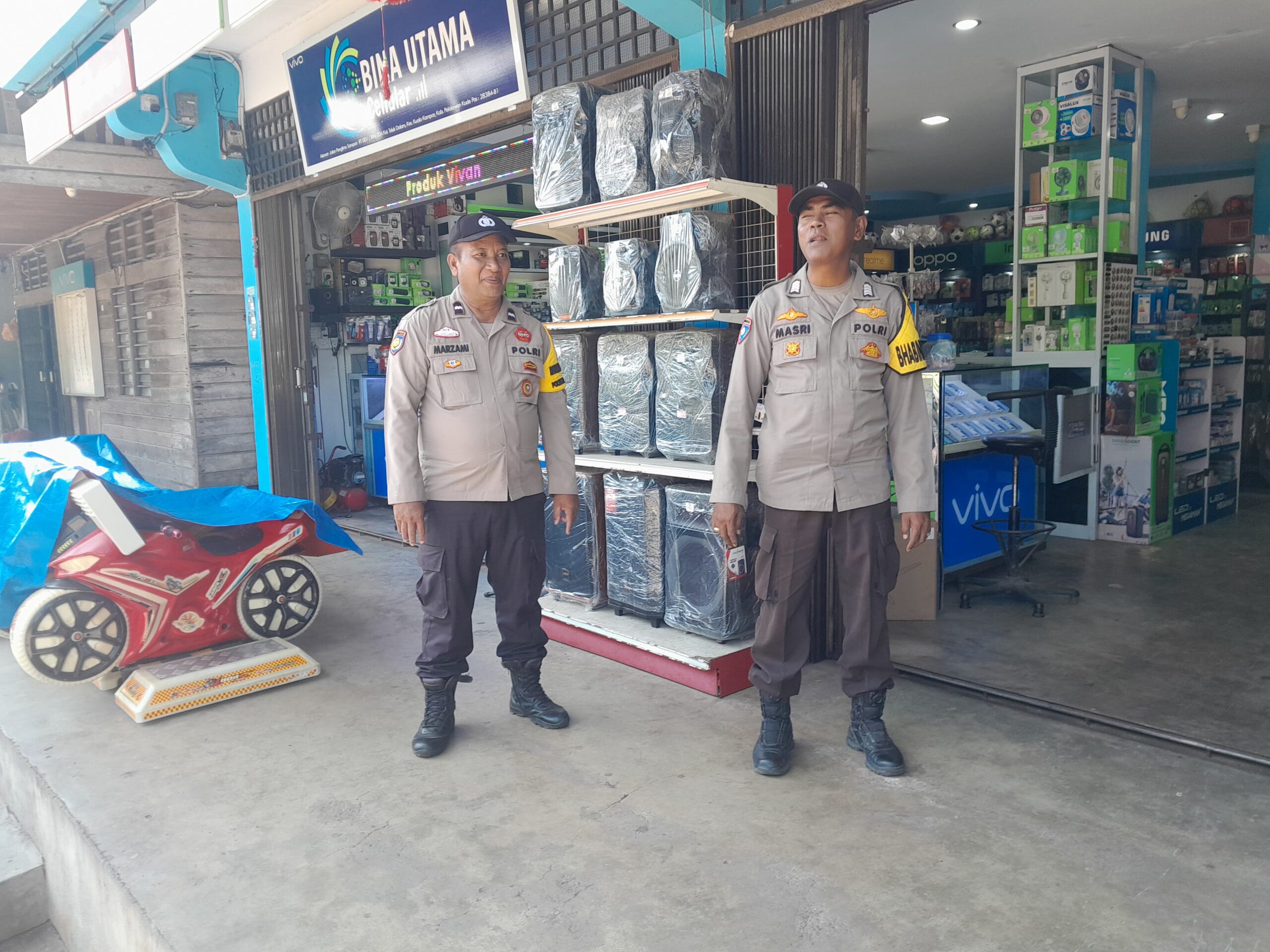 Selain itu, petugas juga menyambangi lokasi keramaian seperti pasar mingguan dan toko kelontong untuk memastikan situasi tetap aman serta mengingatkan warga agar selalu waspada terhadap aksi kriminalitas.