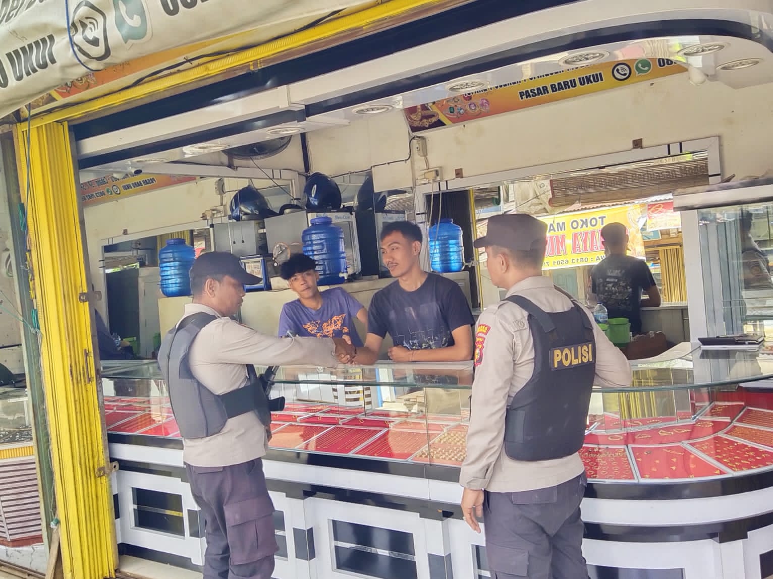 Selama patroli berlangsung, personel Polsek Ukui tampak hadir di tengah aktivitas masyarakat. Kehadiran polisi berseragam mendapat respons positif dari warga dan pedagang yang sedang beraktivitas. Meski terpantau ramai, situasi di sekitar objek vital tetap berjalan tertib dan lancar.