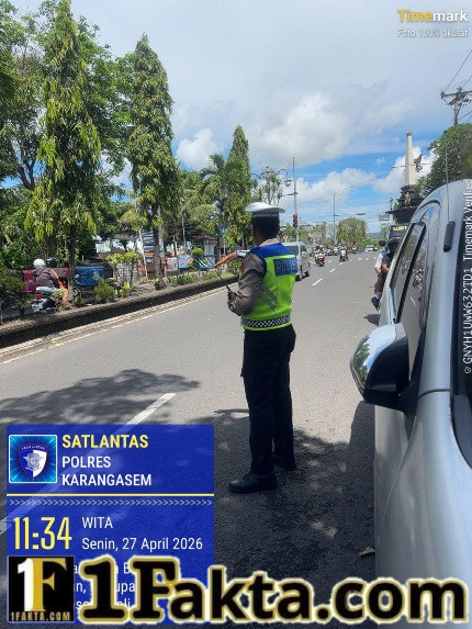 Dalam upaya menjaga situasi lalin yang aman lancar dan kondusif serta menjaga keselamatan anak sekolah, maka personel Lalu Lintas melaksanakan pengaturan arus lalulintas untuk menyebrangan anak sekolah di depan SMP Negeri 2 Amlapura. Pada Senin, 27 April 2026 pukul 12.30 Wita.