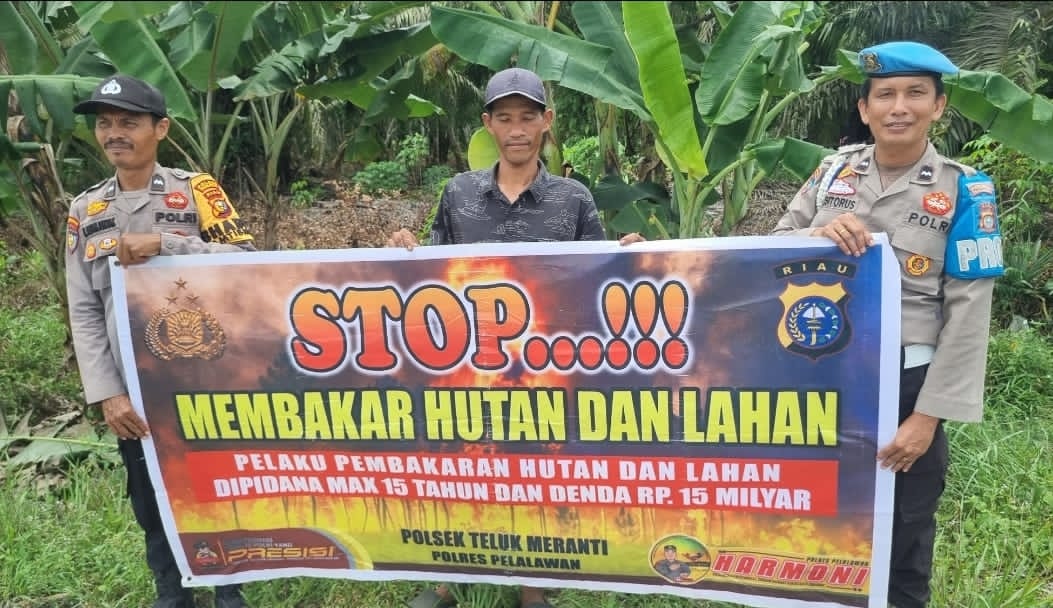 Kegiatan yang dipimpin personel Polsek Teluk Meranti ini dilaksanakan di Jalan Lintas Bono, Kelurahan Teluk Meranti, kawasan perkebunan warga yang rawan terjadinya karhutla.