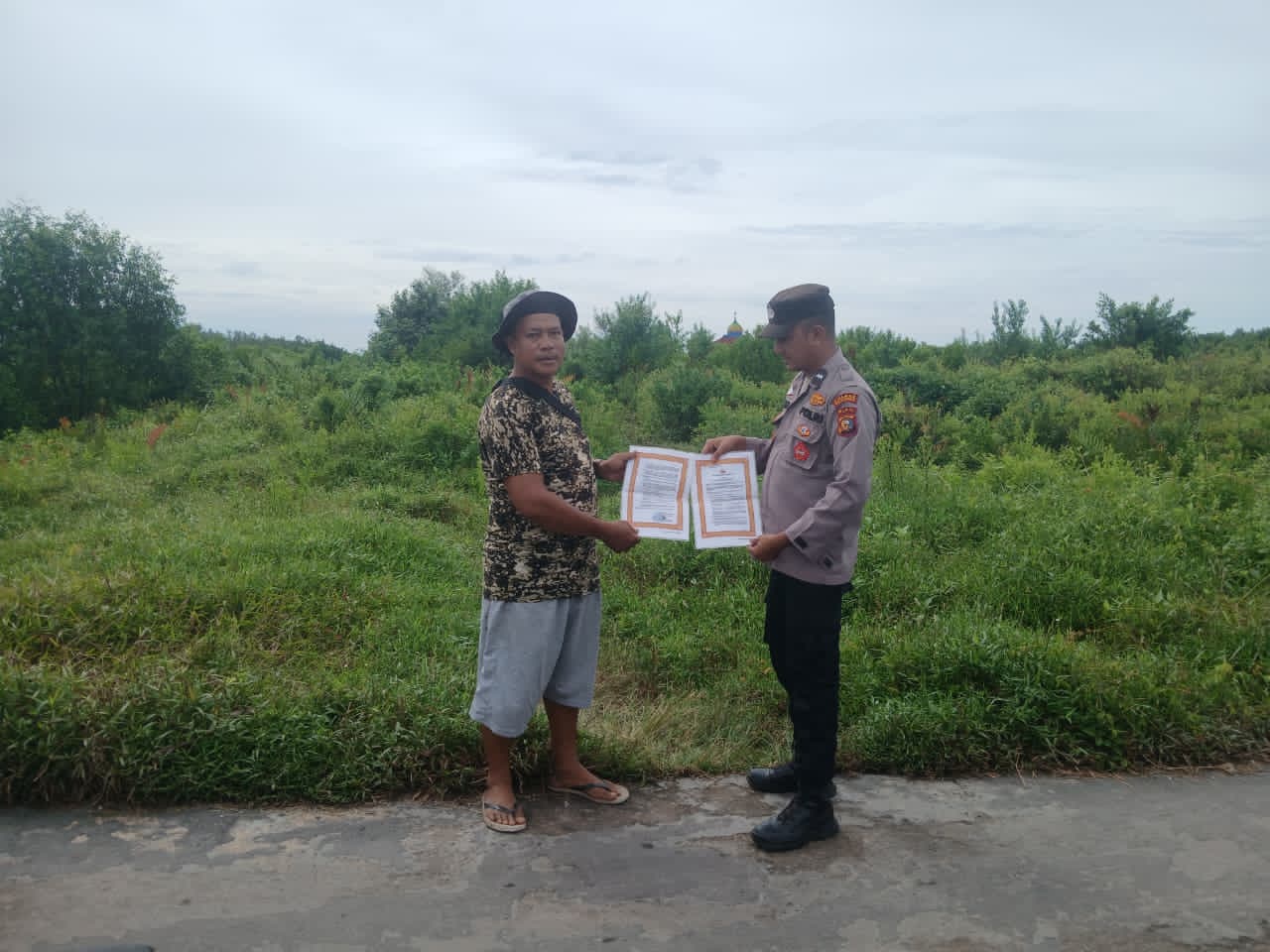 Polsek Kuala Kampar meningkatkan patroli antisipasi kebakaran hutan dan lahan (Karhutla) sekaligus menyosialisasikan maklumat Kapolda Riau kepada masyarakat, Rabu, 26 November 2025. Kegiatan berlangsung di Parit Mawar, Kelurahan Teluk Dalam, Kecamatan Kuala Kampar, sekitar pukul 11.00 WIB.