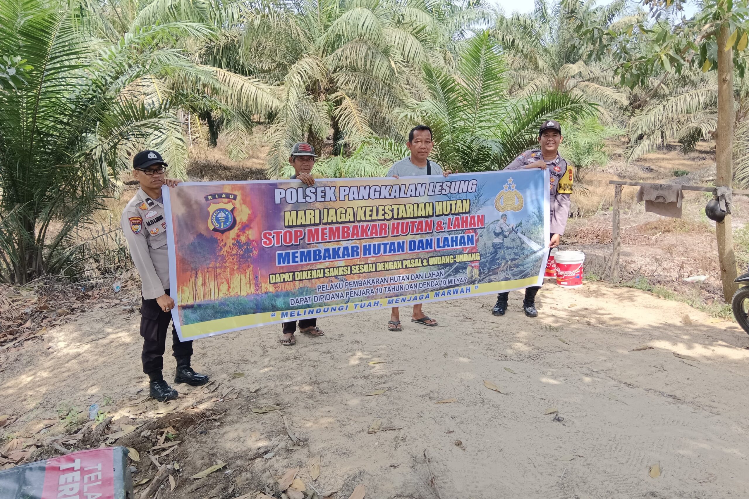 Langkah ini dilakukan dengan menyosialisasikan Maklumat Kapolda Riau yang mengatur larangan membuka lahan dengan cara dibakar kepada masyarakat di wilayah hukum Polsek Pangkalan Lesung.
