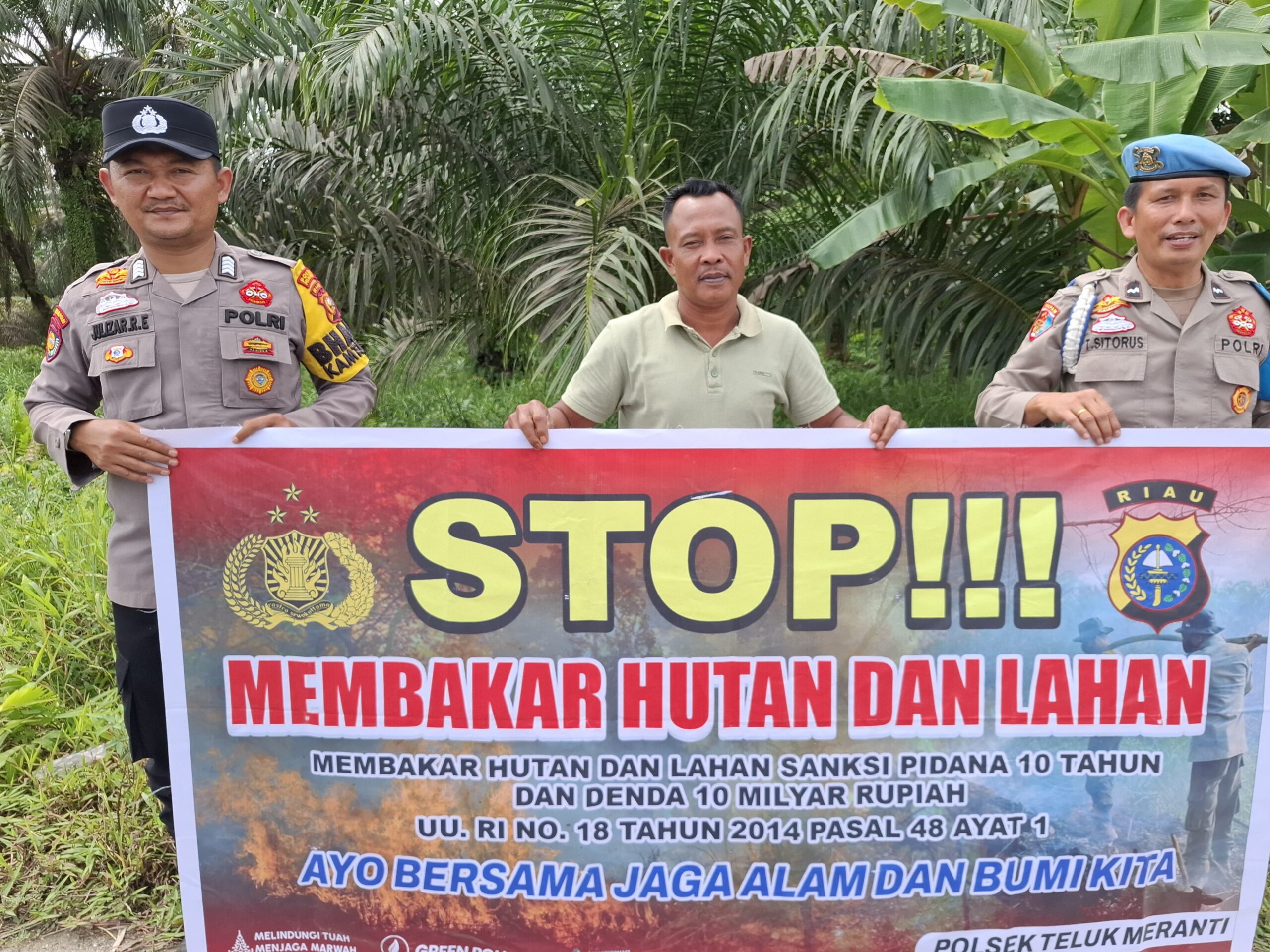 Kepolisian Sektor Teluk Meranti, Polres Pelalawan, melakukan penyebaran Maklumat Kapolda Riau sekaligus kegiatan pembinaan dan penyuluhan (binluh) kepada masyarakat sebagai upaya pencegahan kebakaran hutan dan lahan (karhutla), Minggu, 1 Februari 2026.