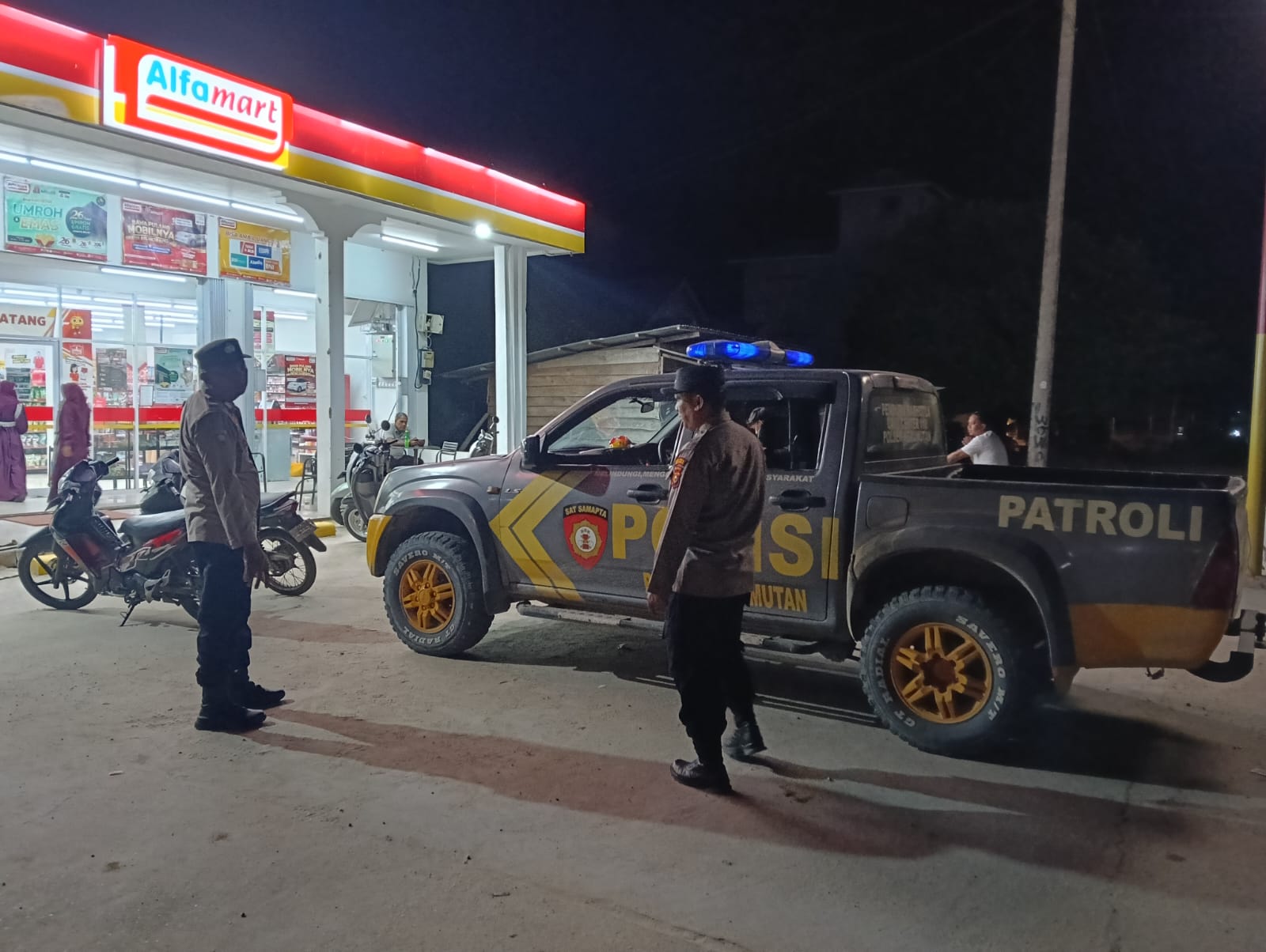 Personel Polsek Kerumutan menggelar patroli Blue Light dan antisipasi tindak pidana Curat, Curas, dan Curanmor (C3) di objek vital, pusat perbelanjaan, dan pusat keramaian, Rabu (26/11/2025) malam.