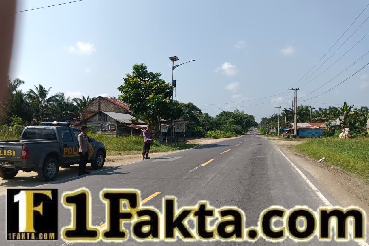 Kepolisian Sektor (Polsek) Pangkalan Lesung melaksanakan patroli rutin dan pengaturan lalu lintas di Jalan Lintas Timur, Kecamatan Pangkalan Lesung, Kabupaten Pelalawan, pada Senin, 27 April 2026.