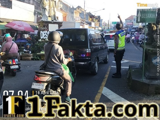 Wujud pelayanan Polri sebagai pelaksanaan tugas-tugas Kepolisian , Personil Polsek Rendang melaksanakan Pos Pengaturan Lalu Lintas atensi kegiatan masyarakat Pasar Menanga dan arus lalu lintas karya IBTK Pura Besakih guna cegah kemacetan serta laka lantas , kamis (16/4/2026).