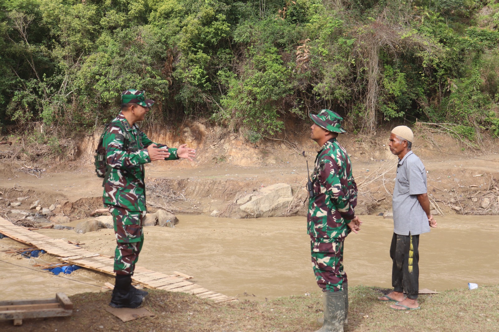 Saat ditempat Dandim 0106/Aceh Tengah Letkol Inf Raden Herman Sasmita mengatakan bahwa personel TNI dan jajaran terkait akan terus bersinergi dengan BNPB dan masyarakat untuk membantu pembangunan jembatan gantung