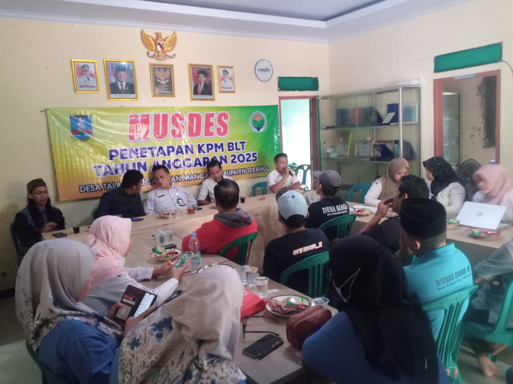 Pemerintah Desa Talaga Kecamatan Mancak Kabupaten Serang Banten menggelar Musyawarah Desa (Musdes) tentang penentuan Penerima Manfaat pada Program Bantuan Langsung Tunai Dana Desa (BLT-DD) agar tepat sasaran, Rabu (26/02/25) dibalai desa setempat.