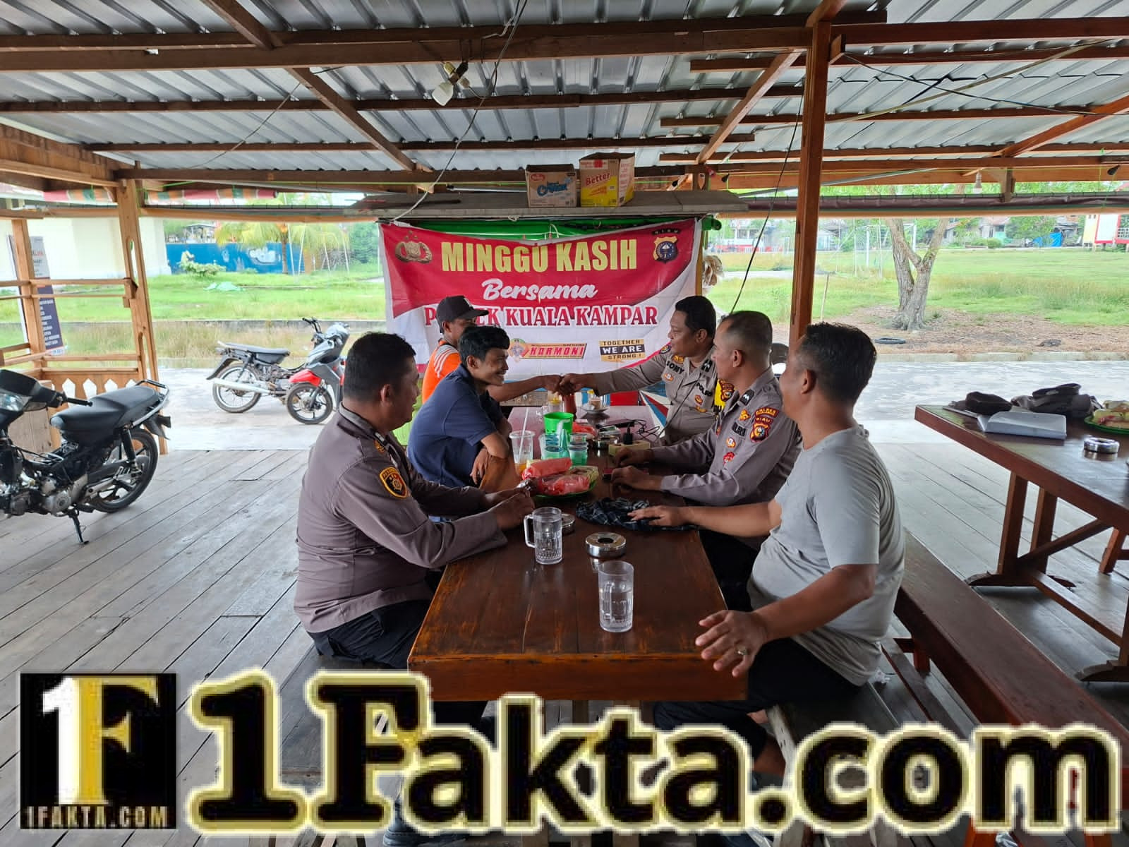 Polsek Kuala Kampar, Polres Pelalawan, menggelar kegiatan Minggu Kasih pada Minggu, 26 April 2026 sekitar pukul 08.50 WIB di Kedai Edi, Jalan Panglima Sampan, Kelurahan Teluk Dalam, Kecamatan Kuala Kampar.