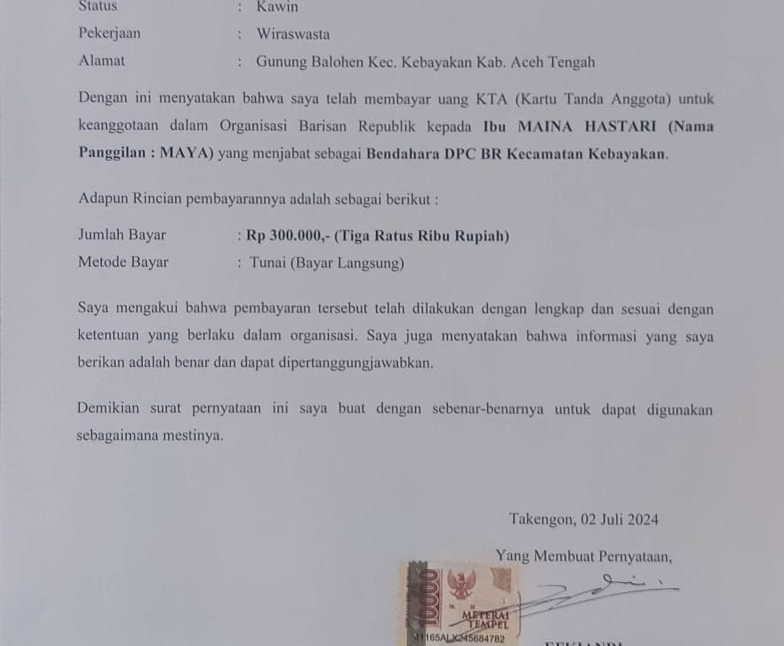 “Ini ucapan orang yang sakit hati, karena DT takut diminta uang KTA yang selama ini beliau ambil dari anggota DPC nya, untuk menghindari pertanyaan anggotanya ia berdalih sudah setor ke DPD BARISAN Republik, Makanya ia menyebar berita bohong atas upaya barisan Republik untuk membantu perekonomian masyarakat, ” Ucapnya.