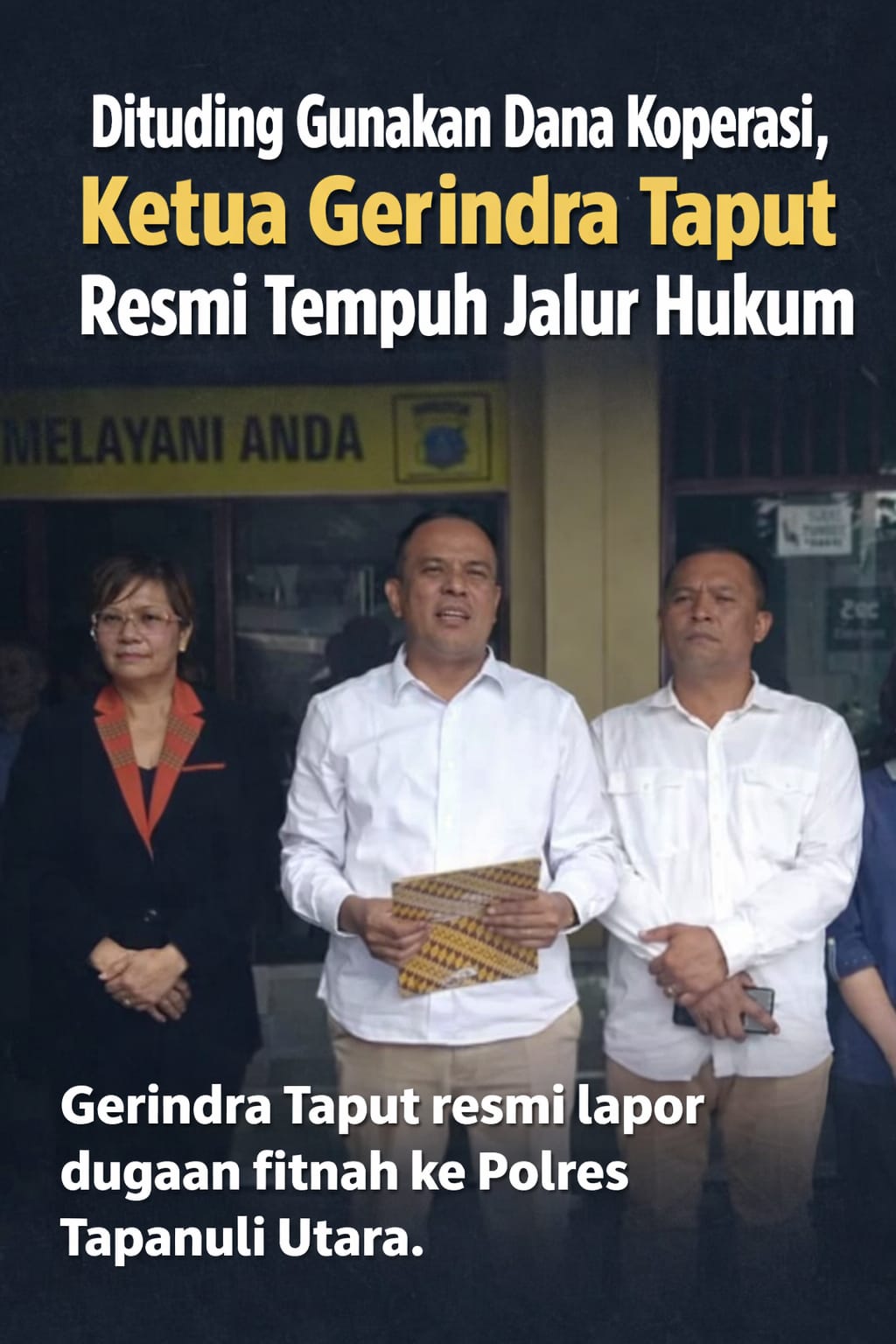 Erikson datang ke Polres didampingi jajaran pengurus DPC Gerindra Taput, anggota DPRD dari Partai Gerindra Timnas Sitompul, serta kuasa hukum Melva Tambunan. Laporan itu telah diterima dengan nomor: STTLP/85/IV/2026/SPKT/Polres Tapanuli Utara/Polda Sumut.