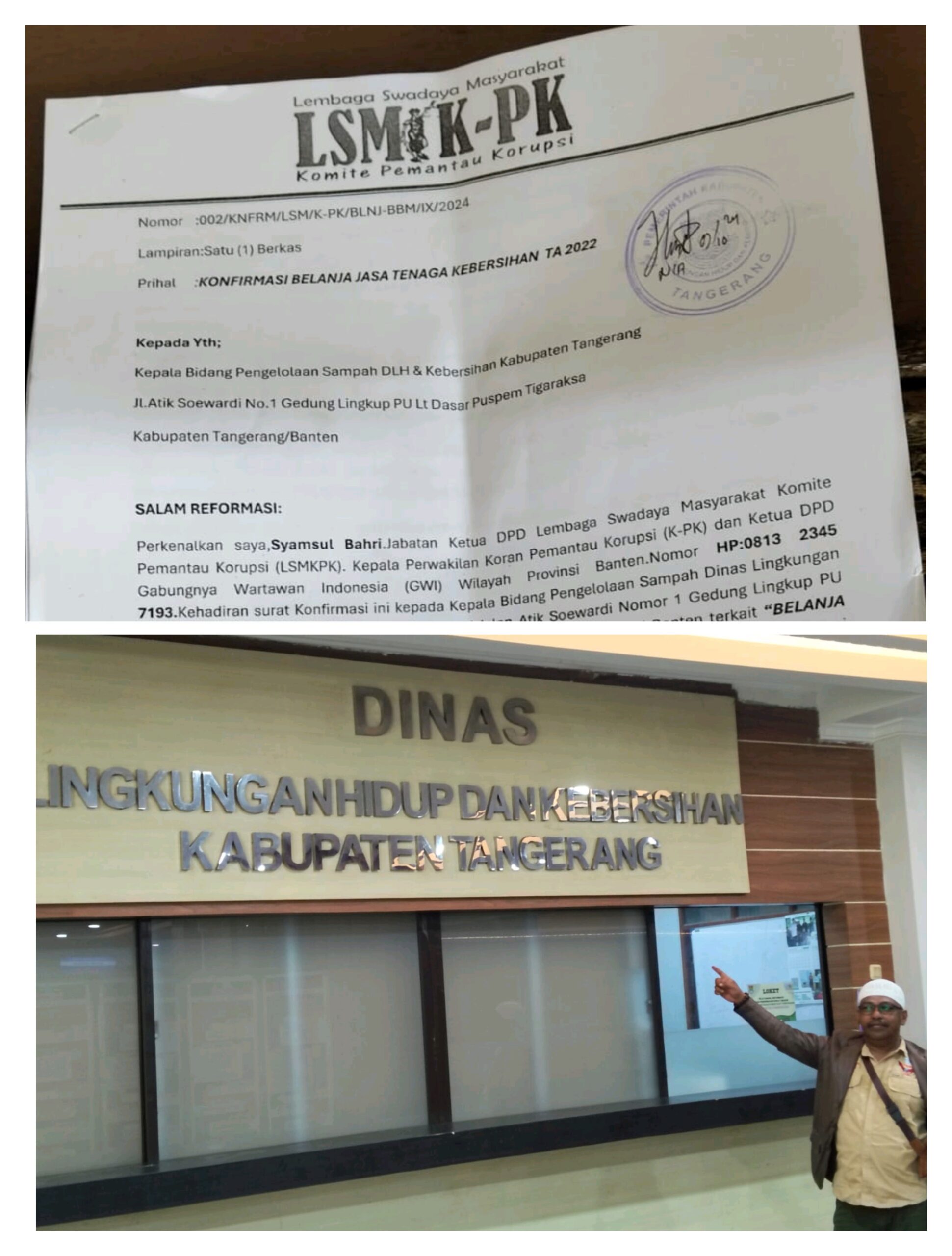 Realisasi gaji tenaga kebersihan Dinas Lingkungan Hidup Kabupaten Tangerang terendus Tim DPD Gabungnya Wartawan Indonesia (GWI) Provinsi Banten yang dinahkodai Syamsul Bahri, Sebelumnya Tim tersebut telah melayangkan surat konfirmasi dan ditujukan langsung kepada Kepala Bidang Pengelolaan Sampah DLH dan Kebersihan Kabupaten Tangerang.
