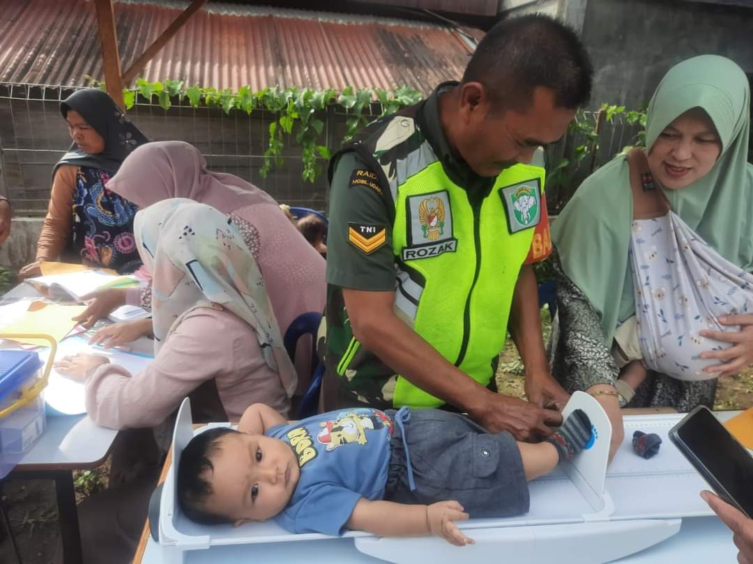 Dalam rangka sukseskan Posyandu dan kejar timbangan, guna untuk mencegah terjadinya stunting Prajurit Kodim 0119/BM, Babinsa Koramil 05/Permata, turun ke wilayah binaan tepatnya di Desa Wih Tenang Uken, Kecamatan Permata Kabupaten Bener Meriah” Selasa 27 Agustus 2024