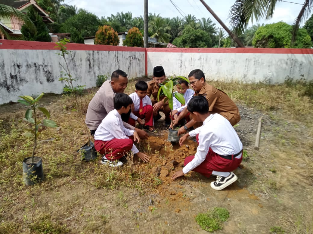 Kepolisian Sektor Kerumutan, Polres Pelalawan, melaksanakan kegiatan penanaman bibit pohon di SD Negeri 011 Kerumutan, Kecamatan Kerumutan, Kabupaten Pelalawan, Senin, 19 Januari 2026. Kegiatan ini merupakan bagian dari upaya penghijauan lingkungan sekaligus mendukung program Kapolda Riau dalam menjaga kelestarian alam.