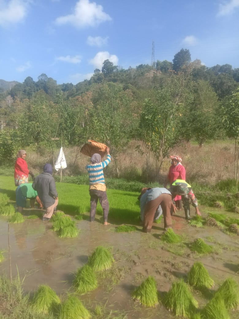 Babinsa turut mendampingi para petani secara langsung di sawah guna memastikan kelancaran proses penanaman. Serda Nasruddin bahkan tak segan turun ke lahan pertanian membantu warga mengumpulkan bibit padi yang siap ditanam.
