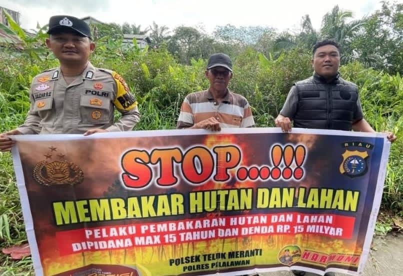 Personel Polsek Teluk Meranti melaksanakan kegiatan penyebaran Maklumat Kapolda Riau sekaligus pembinaan dan penyuluhan (binluh) kepada masyarakat dalam rangka pencegahan kebakaran hutan dan lahan (karhutla) di wilayah hukumnya, Selasa, 10 Februari 2026.