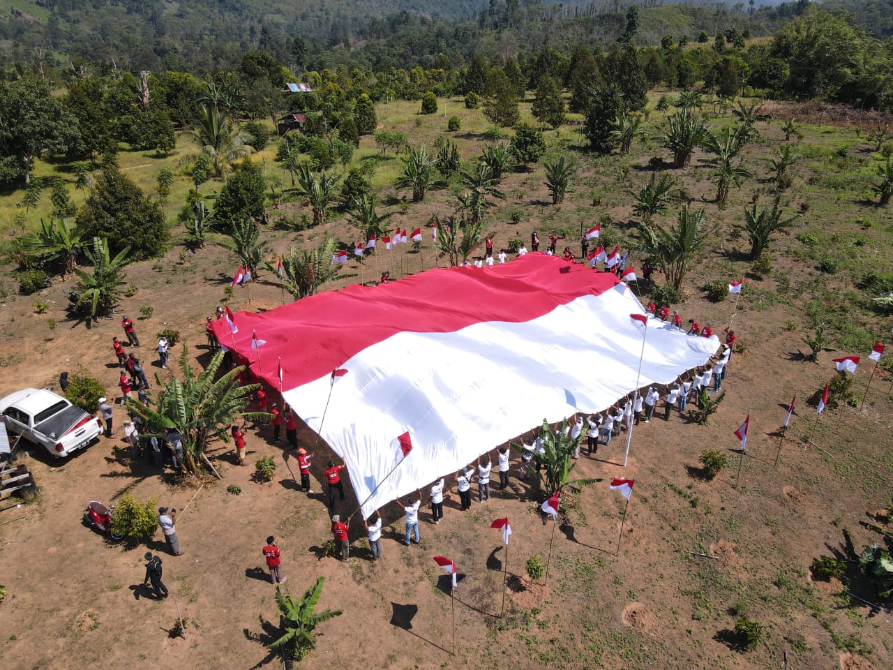“Pembentangan bendera ini, serta bantuan sosial yang kami berikan, adalah bagian dari komitmen kami untuk terus membina dan bekerja sama dengan eks napiter, aksi ini juga menjadi bukti bahwa Poso kini adalah wilayah yang aman dan kondusif,” jelas Kombes Pol Boy F.S Samola.