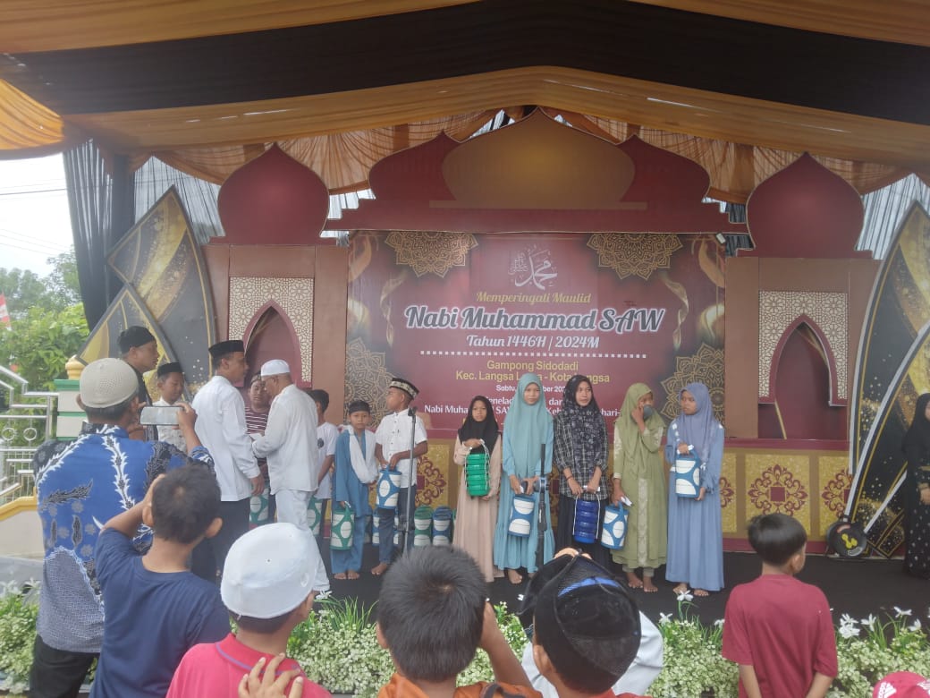 Dalam acara Maulid tersebut di Mulai dengan Santunan Anak yatim yang ada di Gampong Sidodadi, dengan jumlah anak yatim 48 Orang dari tiga Dusun,