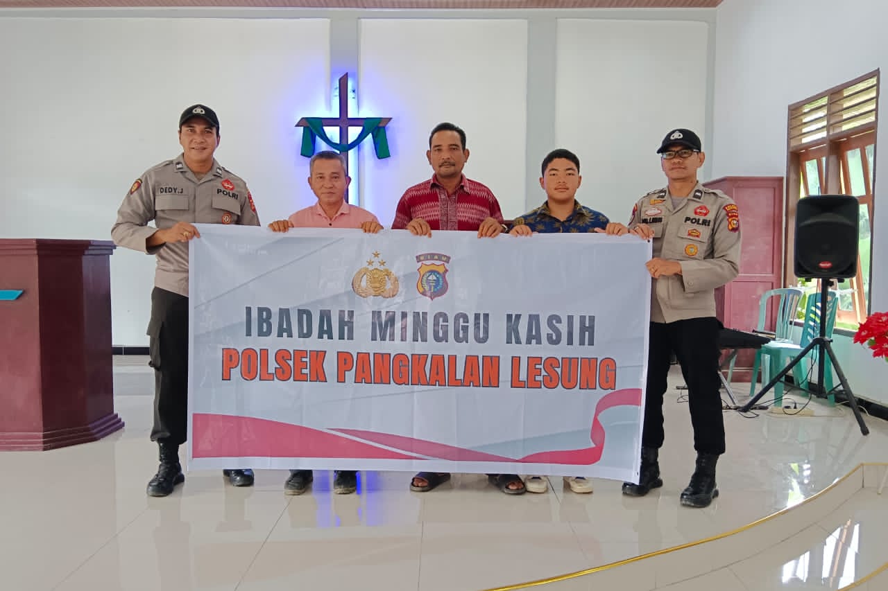 Polsek Pangkalan Lesung menggelar kegiatan Ibadah Minggu Kasih pada Minggu (11/01/2026) bertempat di Gereja Methodis Efrat, Km. 40, Kelurahan Pangkalan Lesung, Kecamatan Pangkalan Lesung. Kegiatan ini dipimpin langsung oleh Kapolsek Pangkalan Lesung, AKP Lambok Hendriko, S.H., beserta anggota.