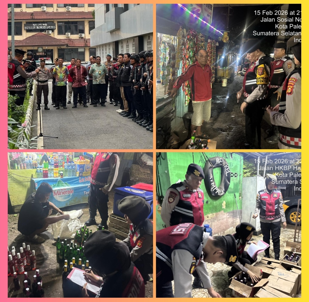 Kepolisian Daerah Sumatera Selatan (Polda Sumsel) terus berkomitmen menjaga situasi keamanan dan ketertiban masyarakat (kamtibmas) melalui gelaran Operasi Pekat Musi 2026. Dalam kegiatan yang berlangsung pada Minggu (15/2) malam hingga Senin dini hari, personel Ditsamapta Polda Sumsel berhasil mengamankan ratusan botol minuman keras (miras) dari berbagai lokasi di Kota Palembang.