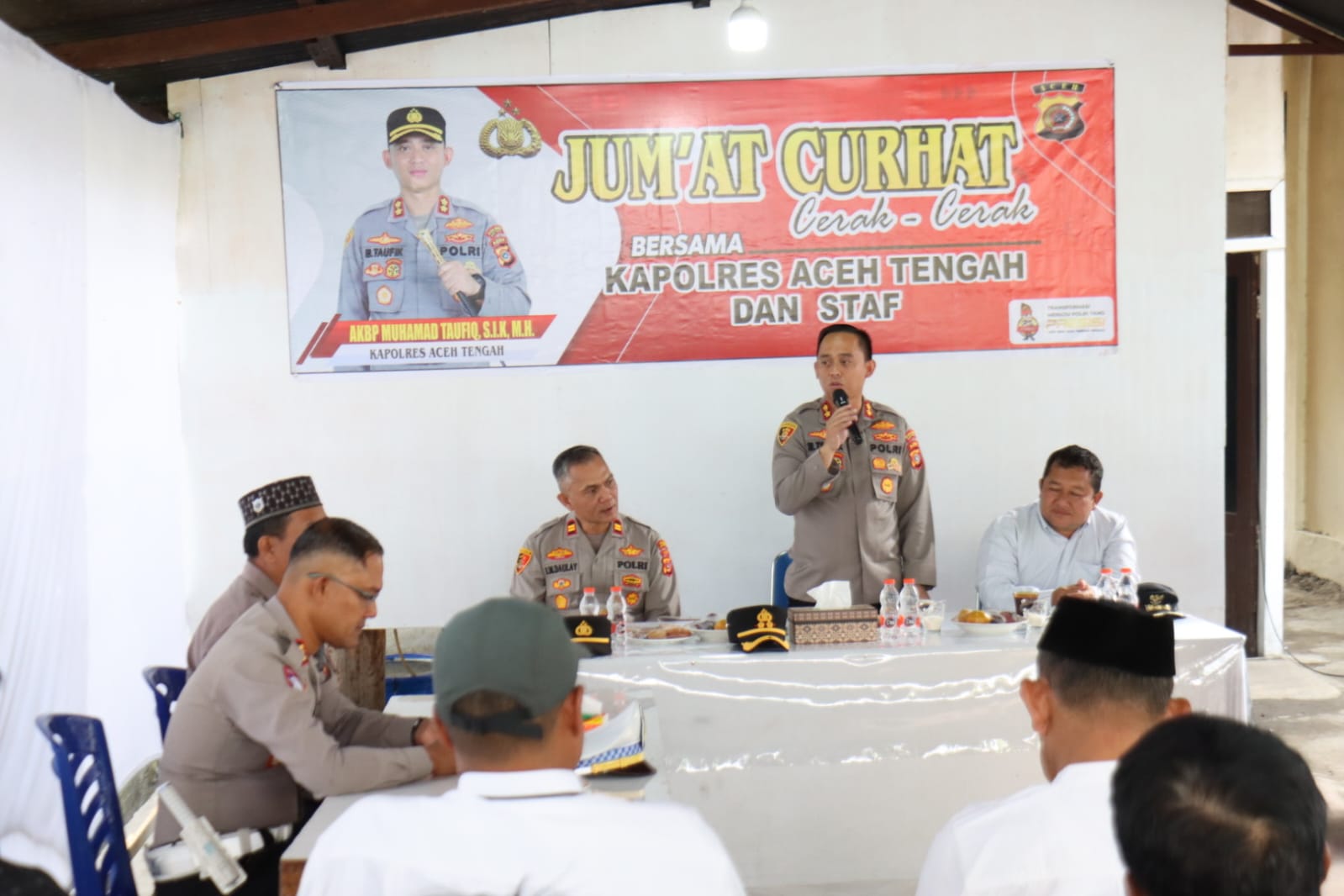 Kapolres Aceh Tengah AKBP Muhamad Taufiq, S.I.K., M.H., dalam sambutannya menyampaikan bahwa Jumat Curhat menjadi media strategis untuk menyerap langsung aspirasi masyarakat serta menyampaikan solusi atas persoalan yang dihadapi.