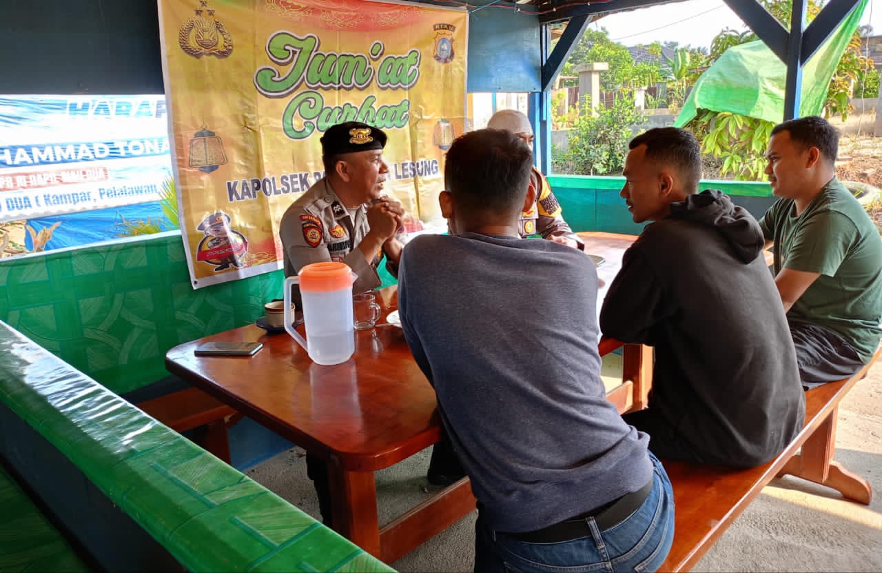 Polsek Pangkalan Lesung melaksanakan kegiatan Jumat Curhat pada Jumat (5/12/2025) pukul 10.00 WIB di Kelurahan Pangkalan Lesung, Kecamatan Pangkalan Lesung. Kegiatan ini bertujuan menciptakan suasana sejuk, nyaman, aman, dan kondusif (Cooling System) di wilayah hukum Polsek Pangkalan Lesung.