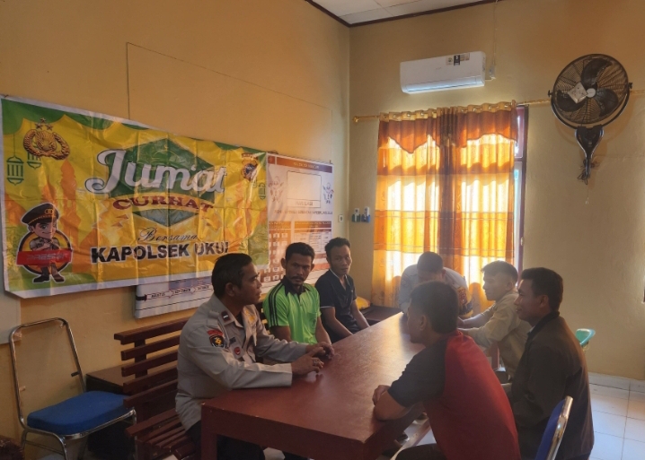 Polsek Ukui kembali melaksanakan kegiatan Jumat Curhat sebagai bentuk upaya mendekatkan diri dengan masyarakat serta menampung berbagai aspirasi yang berkembang di tengah masyarakat. Kegiatan tersebut dilaksanakan pada Jumat (13/03/2026) sekitar pukul 09.45 WIB bertempat di Aula Polsek Ukui Jalan Lintas Timur Ukui, Kelurahan Ukui, Kecamatan Ukui, Kabupaten Pelalawan.