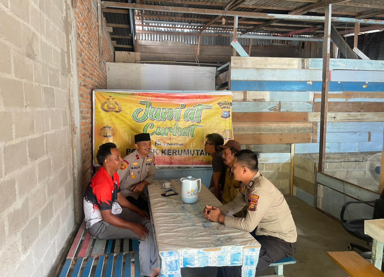 Polsek Kerumutan melaksanakan kegiatan Jumat Curhat pada Jumat (27/11/2025) pukul 10.00 WIB di Kedai Kopi Jalan Exspan Kerumutan. Kegiatan ini bertujuan menyerap aspirasi masyarakat dan meningkatkan pelayanan kepolisian di wilayah hukum Polsek Kerumutan.