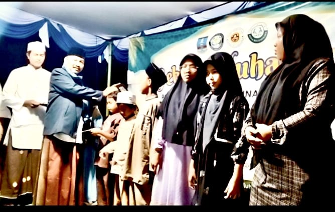 pembagian santunan anak yatim serta memberikan piala masing-masing pemenang dipimpin langsung oleh kades Wawan serta didampingi para ulama juga pemuda karang taruna untuk bagikan piala yang menjadi juara pemenang perlombaan tersebut.