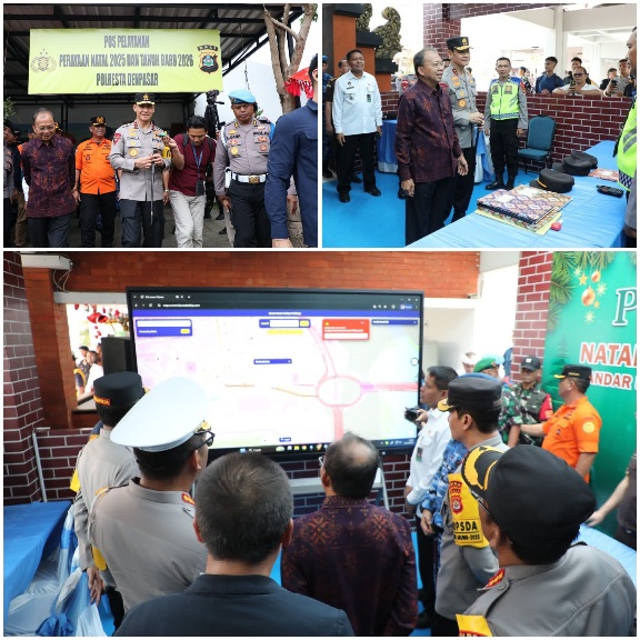 Dalam memastikan kesiapan Pengamanan Nataru. Kapolda Bali, Irjen Pol. Daniel Adityajaya, S.H., S.I.K., M.Si. bersama Gubernur Bali, Dr. Ir. Wayan Koster, M.M. dan Forkopimda Provinsi Bali lainnya meninjau Pos Pelayanan Pelabuhan Benoa dan Pos Terpadu Natal 2025 dan Tahun Baru 2026 di Terminal Domestik Bandara I Gusti Ngurah Rai, pada Rabu, (24/12/2025).