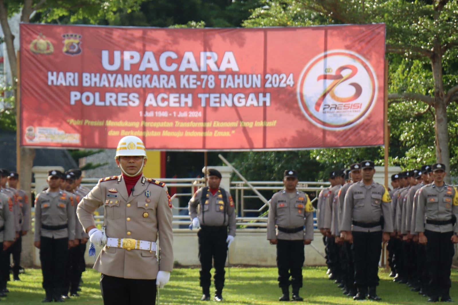 Hari ini Polri melaksanakan Upacara Hari Ulang Tahun Bhayangkara Ke 78, itu dilaksanakan serentak oleh Kepolisian Republik indonesia mulai dari Mabes Polri, Polda jajaran dan Polres, Seperti yang dilaksanakan oleh Polres Aceh Tengah, Senin 1 Juli 2024 pagi pukul 08.00 Wib.