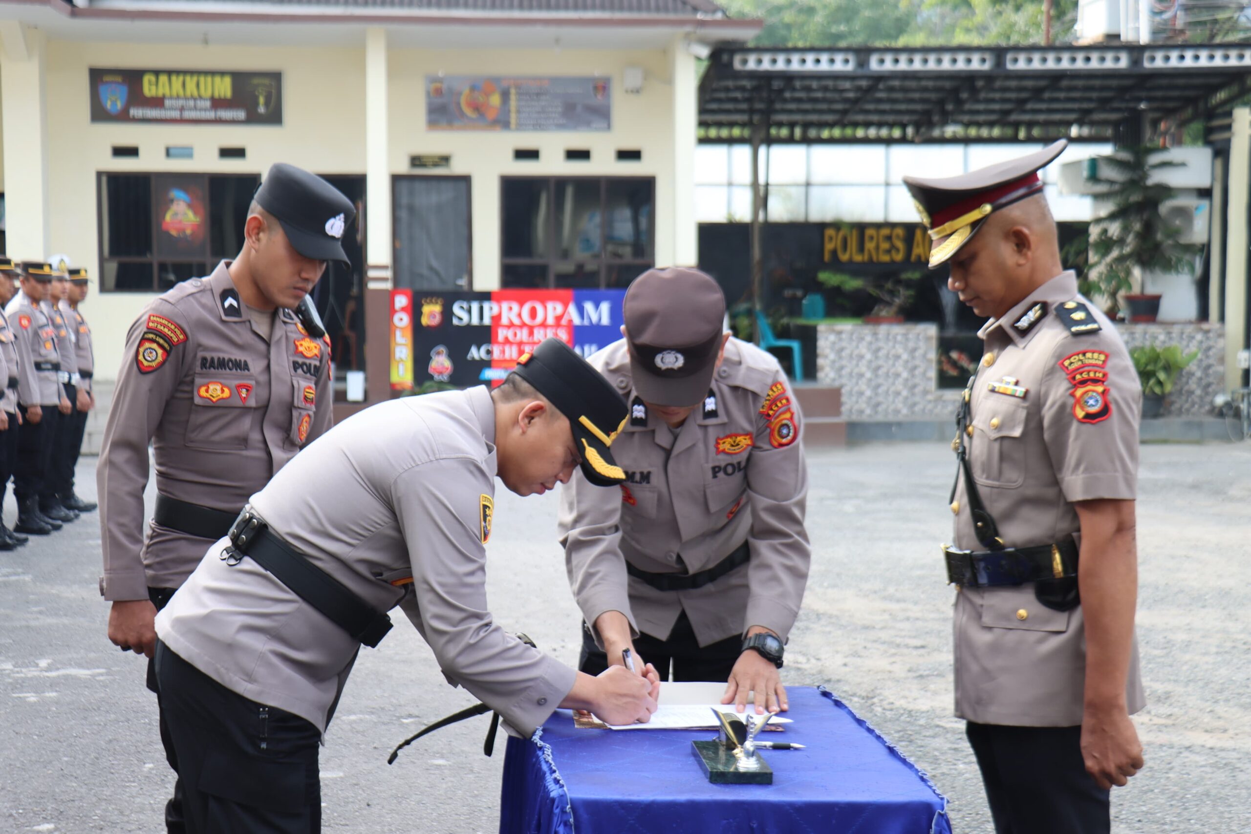Kapolres Aceh Tengah, AKBP Muhamad Taufiq, S.I.K, M.H, memimpin upacara serah terima jabatan (sertijab) Kabag Ren, Kasat Samapta dan Kapolsek Bebesen Polres Aceh Tengah.