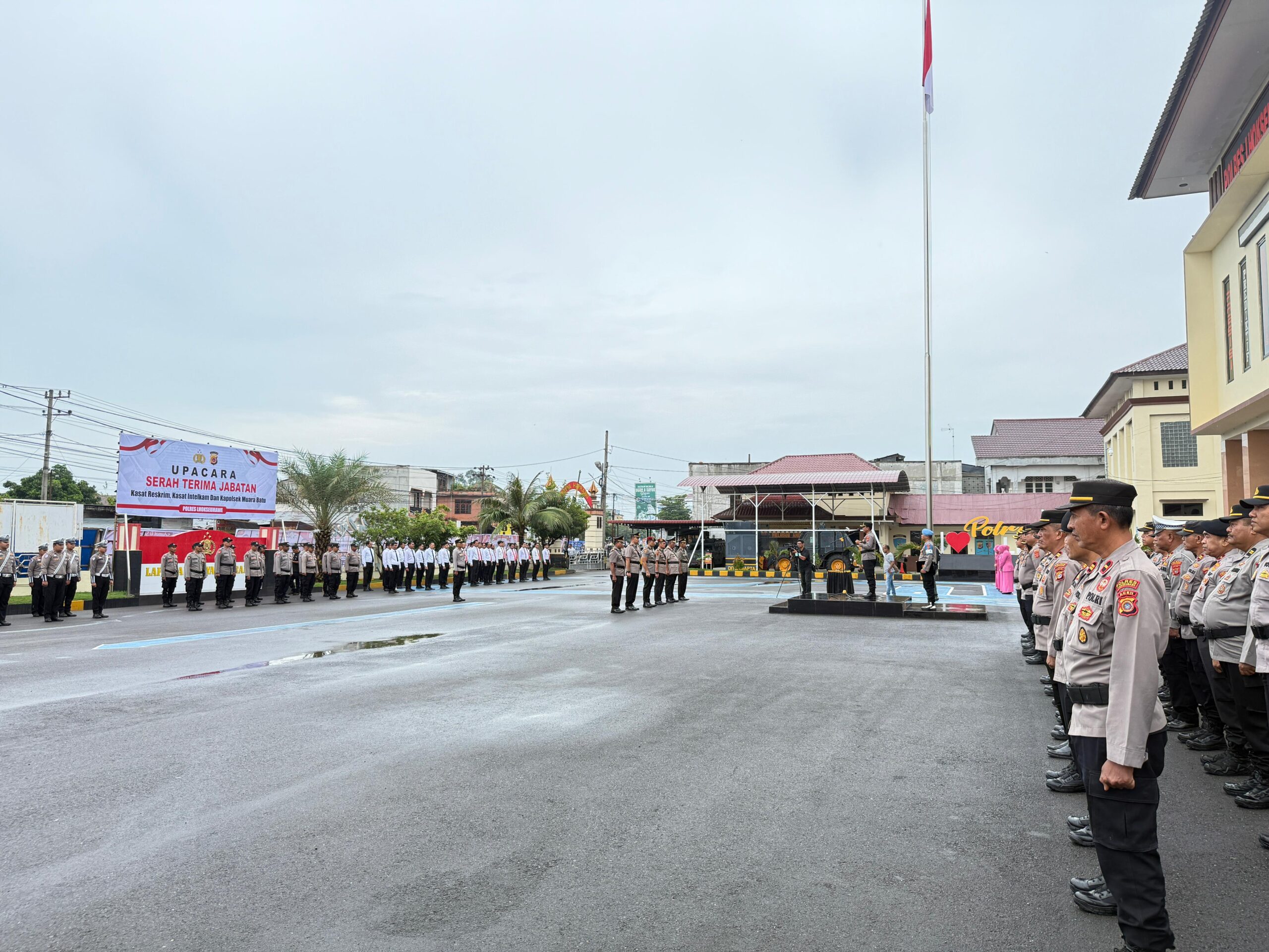 Kapolres Lhokseumawe AKBP Dr. Ahzan, S.H., S.I.K., M.H., M.S.M. memimpin upacara serah terima jabatan (sertijab) Kasat Intelkam, Kasat Reskrim, dan Kapolsek Muara Batu yang berlangsung di Aula Wira Satya Mapolres Lhokseumawe, Kamis (13/11/2025) pagi.