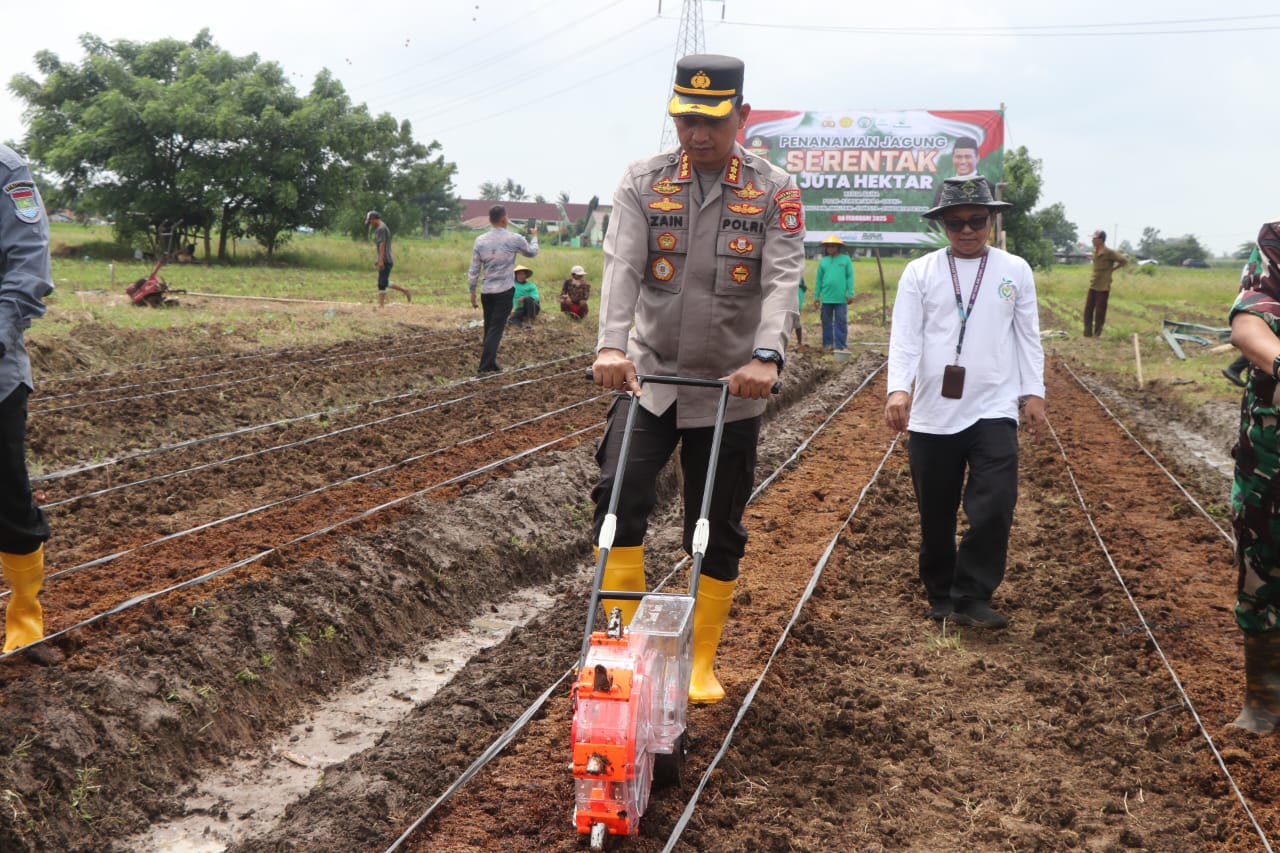 Kapolres Metro Tangerang Kota, Kombes Zain Dwi Nugroho menyampaikan untuk menyukseskan penanaman jagung serentak 1 juta hektar di Indonesia, Pihaknya memanfaatkan lahan tidur di Kampung Pisangan Talan, Desa Sarakan, Kecamatan Sepatan bersama dengan Kelompok Tani Cacare.