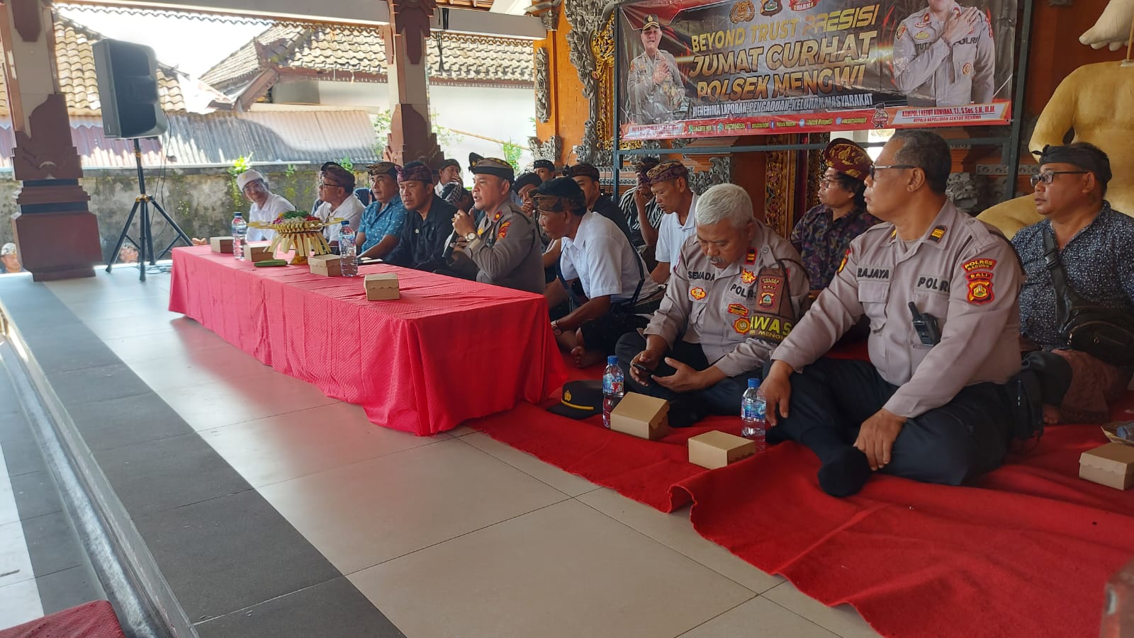 Kali ini Polsek Mengwi menggelar kegiatan Jumat Curhat di Balai Banjar Babakan Kawan, Desa Gulingan, Kecamatan Mengwi, Kabupaten Badung, Bali. Jumat (28/2/2025) pukul 09.00 wita