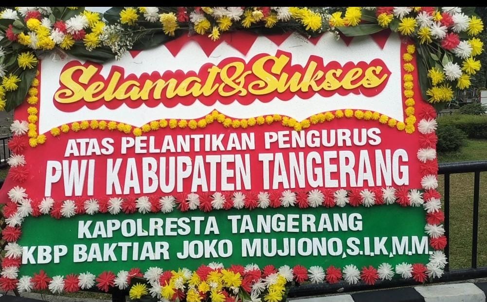 Tangerang,1Fakta.com  – Ratusan karangan bunga ucapan selamat warnai pelantikan ketua dan pengurus Persatuan Wartawan Indonesia (PWI) Kabupaten Tangerang, dilangsir dari media suaragram.co